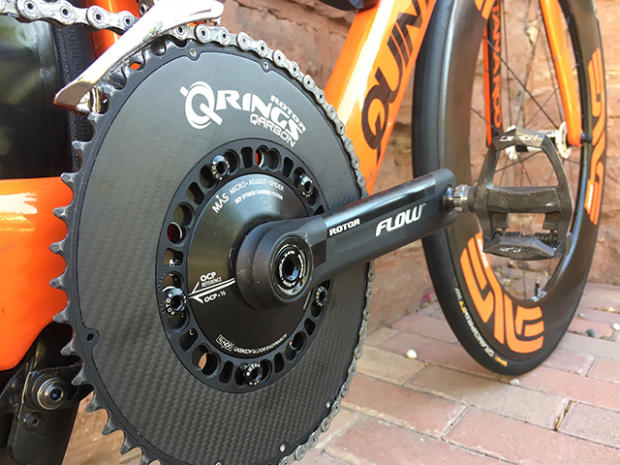Timo Bracht rides Rotor Flow QRings with 53/42 rings and a 11-23 Shimano Dura-Ace cassette. The chain is a CeramicSpeed UFO and the pedals Exustar.