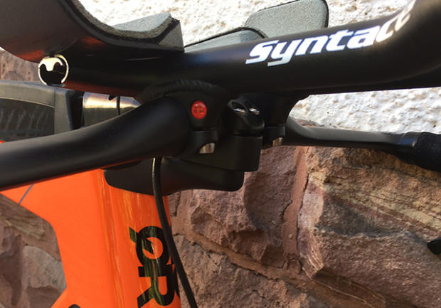The Syntace front end is not very common in North America but it works well for Timo Bracht. He rides Syntace C3 extensions and Syntace Stratos base bars with Drag 2 Zero arm cups. For the race he added a BTA bottle.