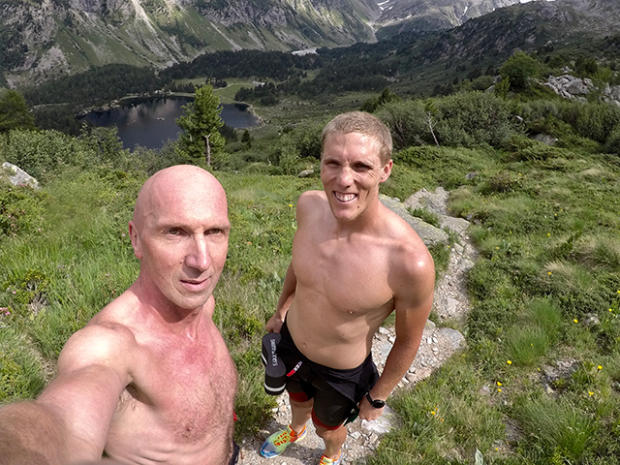 I then got Vladimir Banas to join me in Switzerland. Vlad is an experienced ultra marathoner, long distance triathlete and strong swimmer, and he was going to be in Europe anyhow. He and I had already agreed to race in another event together, and we seemed to match up well. We ran the SwimRun NC course together one day and it went very well. I was thus very optimistic about our upcoming adventure. But only a week later while driving home from work he experienced a scary tachycardia episode, and that meant he was now out too. With the race now only 11 days out and in far away Europe I started to worry, but did not give up. A good friend of mine recommended American Carson Christen as a possible teammate, and it turned out that this TriSutto coach who currently resides in Schweinfurt, Germany had planned to go to St. Moritz, Switzerland on July 9th (race day) anyhow as he was part of a training camp with Brett Sutton that started a day later. This 28-year old former college swimmer from Iowa was clearly plenty fast in the water and we seemed to match up well for running together too.