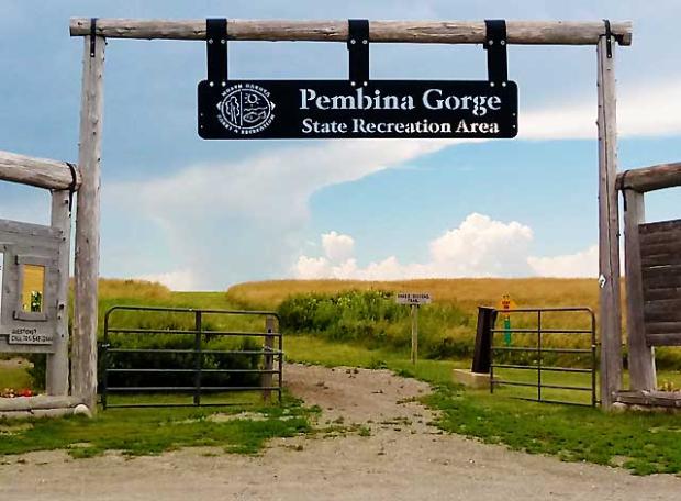 The bike course is 10 miles of pavement, 34 miles of ATV trails and roughly 68 miles of gravel farm roads. We also had to wade, waist deep across the Pembina River carrying our bikes…twice! The trails are part of a state recreation area designed and maintained specifically for ATVs. The system of trails crisscross the side of the Pembina Gorge and are covered with a canopy of lush trees and bushes. The trails are 5-feet wide, smooth with very few rocks or tree roots, and have banked corners that make most of this section a combination of a GS ski course and a BMX pump track.