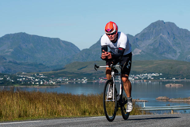 Beautiful weather greeted the athletes on the bike course and Morten Bie seemed to embrace it.