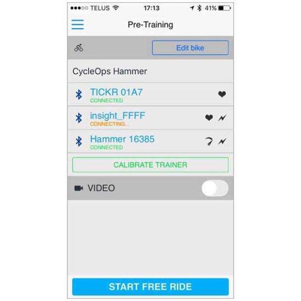 Once powered, I’d recommend pairing the Hammer to the free iOS PowerTap mobile application for firmware updates or their mobile training app, Rouvy (formally VirtualTraining) which can function as a training tool, and allow for firmware updates, perform a zero-offset, and calibrate the trainer.  The Rouvy app, available in both iOS and Android, is free for basic use but a subscription is required for some of the more advanced features.  There is also the option to update the firmware via their online software (Rouvy) platform on a desktop PC.