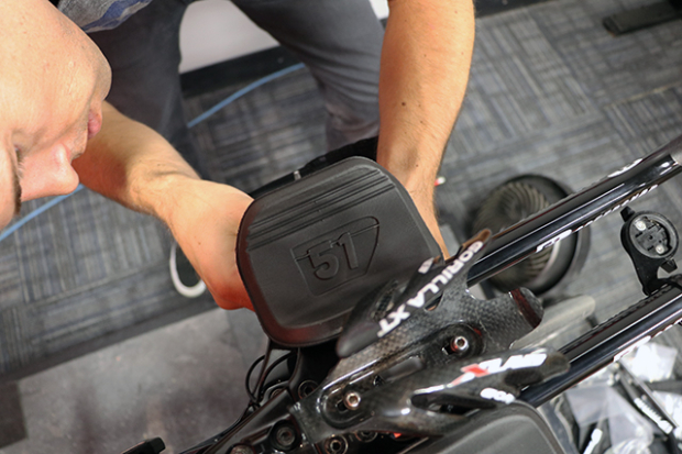 Montgomery however is back to training and racing and eager to show the world what he can do, and recently he spent time with Mat Steinmetz of 51 SPEEDSHOP to get dialed in on his Cervelo P5X. Montgomery had been fitted by Ryan Williams of 3Dbikefit and Steinmetz who works closely with Williams was a second set of eyes here and also helped with his front end contact points.