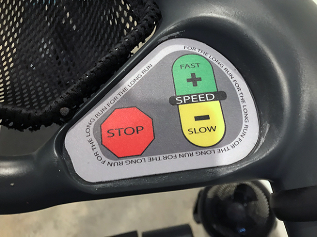 There also control buttons on the arms of the Woodway. Speed on the right hand side, and elevation on the other.