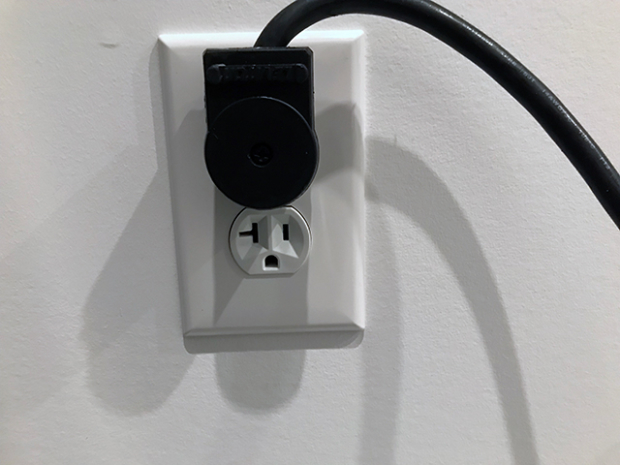 We have modern Legrand outlets and light switches everywhere, but not here. The Woodway requires a 110V NEMA 5-20R outlet with a dedicated 20 amp line.