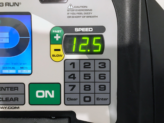 Top speed possible is 12.5 mph and I doubt that I ever will find that limiting. That by the way is 4:48 pace which would get you a 14:53 5k.