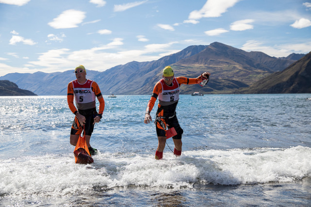 Lake Wanaka is in a stunning area of New Zealand and the Breca SwimRun organization held their second event there last weekend – in both a long course and short course format. For those who wanted to have the ultimate challenge and go long that meant 45.5km of running and 8.5km of swimming. The shorter event meant 16km of running and 3.5km of swimming and this year most teams flocked to that offering. According to race director Ben de Rivaz, many long course athletes who raced the 2017 event decided this year to try out the new Breca Bay of Islands SwimRun on April 15 instead. 62 teams total started in Wanaka and Ben de Rivaz is pleased with the signs of the growth in New Zealand.