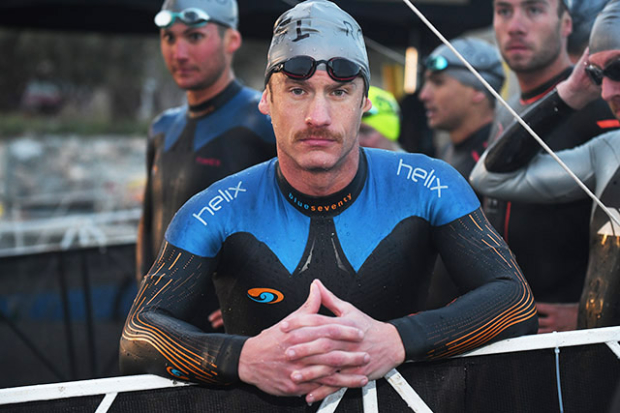 Jan Frodeno led the pro men’s swim in 22:20. Quicker the better to get out of 58 degree water.
