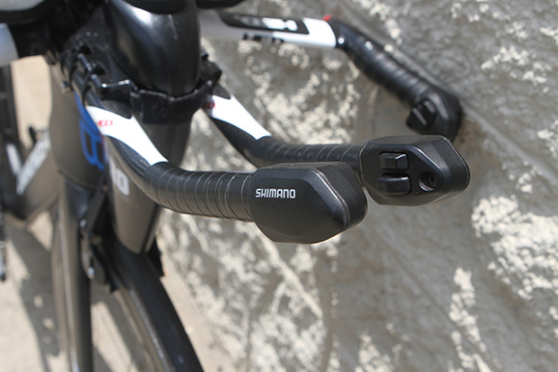 The shifting is handled via Shimano Dura-Ace Di2 buttons both on the extensions and the brake levers.
