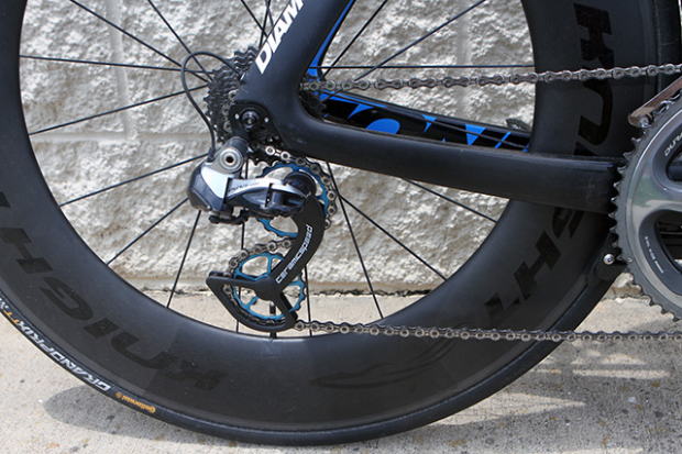 A CeramicSpeed OSPS is attached to the Shimano Dura-Ace rear derailleur.