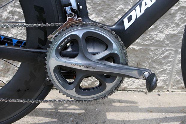 Matt Russell rides 165mm Shimano Dura-Ace cranks with a 56 tooth outer ring …