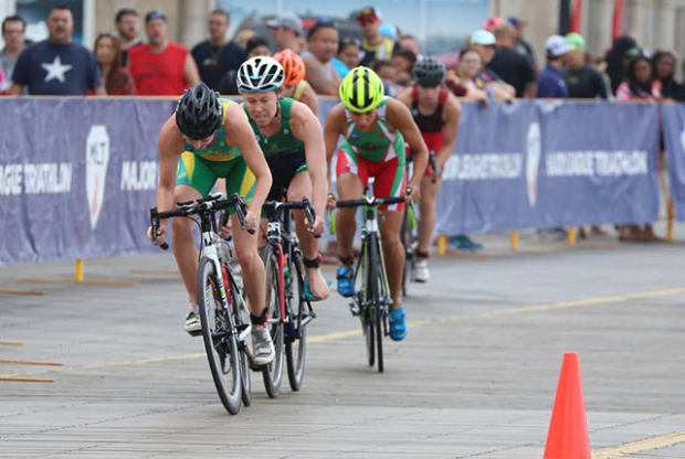 Like the recent ITU Mixed Relay World Championship in Hamburg Germany won by the French team, each team consists of two men and two women. In Atlantic City, each member of their team attacked a mini sprint distance course of 300 meter swim, 3.5 mile bike leg and 1 mile run set in rough Atlantic City surf, riding 3.5 miles on the famed Boardwalk and finish with a 1 mile run in the sand.