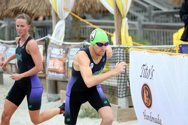 The key moment in slam bang, highly competitive, back and forth racing came down to a battle between the Carolina Gliders’ Tommy Zaferes and Gold Coast Tritons; Brandon Copeland on the bike leg. When Copeland slid down, Zaferes ran off for the $7,000 team prize and Copeland picked up his bike and crossed the line second for the $5,000 runner-up team prize.