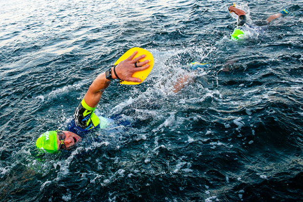 and Daniel Berenett complete another swim segment.