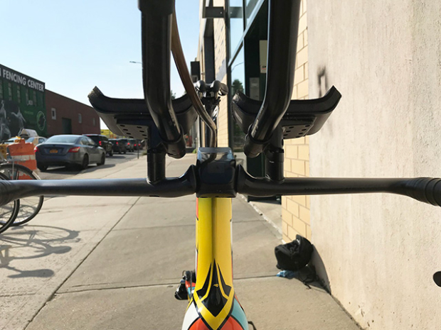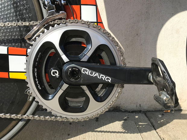 The drive train components are Shimano Dura-Ace Di2 but the cranks are 165mm long Quarq DFour.