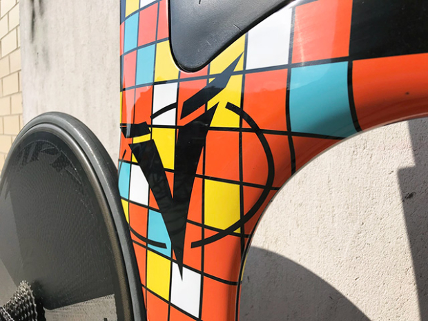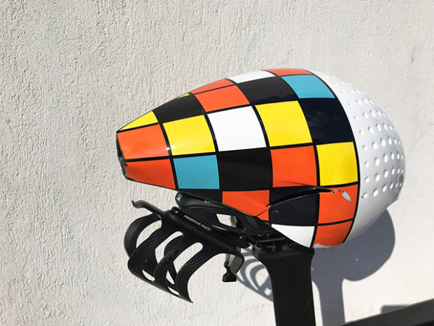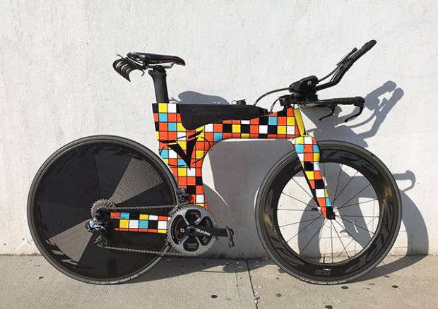 Greg Close is a professional triathlete and coach who races on this very distinctive checkerboard Ventum One, and as it should be – he also has a matching helmet. Being stylish while doing your job is well appreciated.
