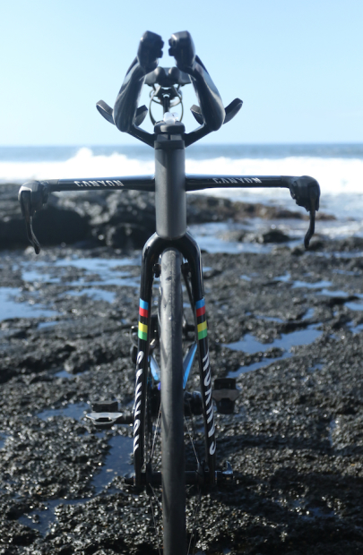 Canyon's H26 CF Basebar with Ergon grips for holding steady in the potentially blustery trade winds.