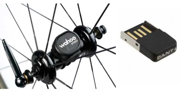 1. ANT+ speed sensor → ANT+ USB dongle → PC or Mac