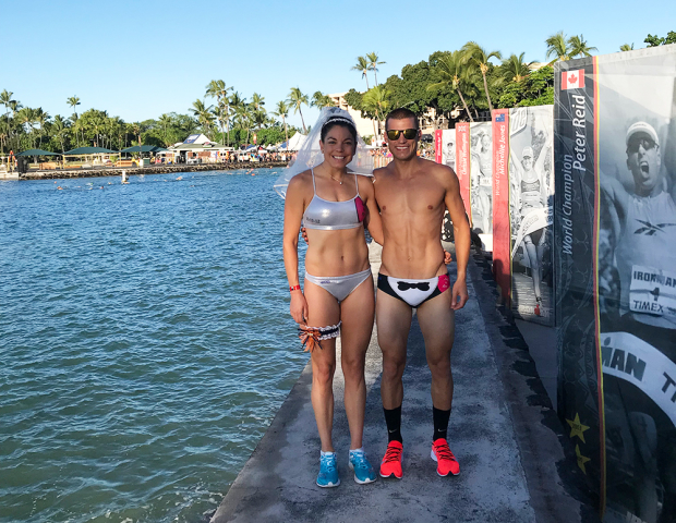 Jacqui: Ryan became my boyfriend shortly after that awful Chicago Marathon 2007 experience and started training me for marathons, but still had me doing the biking and swimming. Summer 2008, he dragged me to Buffalo Springs with him to do the 70.3 there – since I had been biking and swimming anyway was his thought process…and I missed qualifying for Kona by 9 seconds. I didn’t realize what a big deal that was at the time, so just returned to running. On our actual wedding day in 2012, the Ironman World Championships was going on and Ryan said it’d be fun to be there for our one-year anniversary. I completely thought he meant as a fun trip for us. That winter, Ryan and I decided to sign up for Eagleman 70.3 as there was no way I was going to do a full Ironman since I just started my amazing current teaching job. We knew we’d have to win our age groups and that it’d be challenging, but we were also both excited and figured we had nothing to lose. We were definitely hopeful as our plan was to use our qualification as a double celebration: our one year wedding anniversary, and a fun day to compete in the Ironman World Championships together, and my first ever Ironman, but I didn’t contemplate that part very much. 2018 was our 6th wedding anniversary on the date of our 6th consecutive Ironman World Championships race, so it made the day even more special.