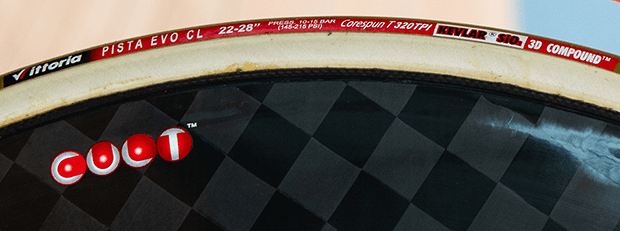 Depending on the tire size, the cadence calcs out to somewhere between 99 and 102, depending on tire size. Victor was aiming for 102. Hour records are generally set at a cadence of about 103. And here's the tire. The low pressure rating for this tire is 145psi.