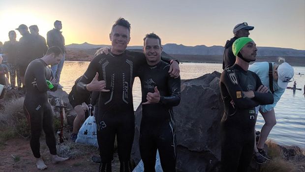 German age grouper Axel Reusch traveled far to race IRONMAN 70.3 St. George, but when he witnessed Darren De Reuck falling early on during the bike segment, Reusch stopped to assist while many others did not. Boulder resident De Reuck had fallen hard and subsequently fractured his femur and was thus unable to continue. Reusch eventually rolled on and managed a 2:30 bike split and a 4:51:33 total time, and was able to grab a 70.3 Worlds slot. Currently Reusch is exploring Utah before returning to his day job as the owner of Der Laufladen running shop in Sonthofen, Allgäu. Reusch also organizes various events.