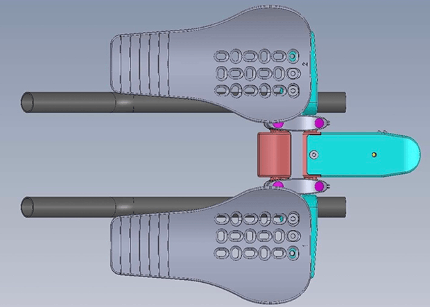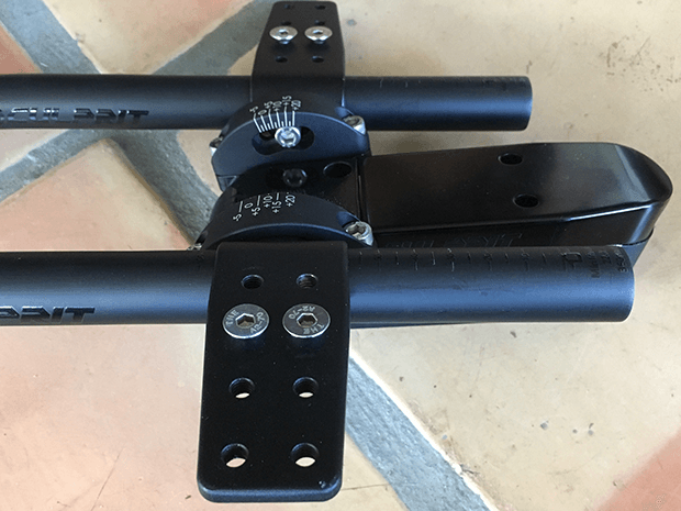 If you look at the image above, the aerobar starts to take shape. Here the extensions have been attached, and you can see where the armrests mount. You can also see that there’s rotation built into this aerobar system.