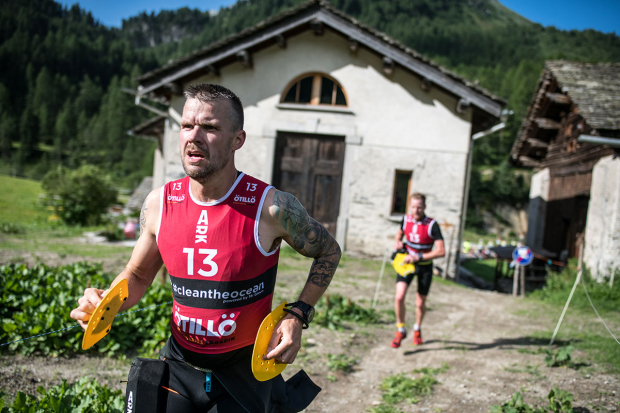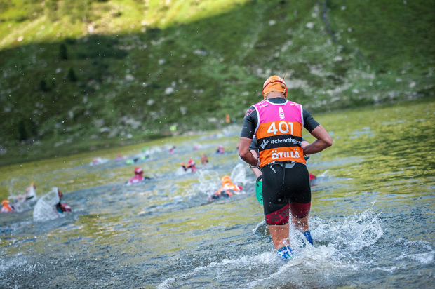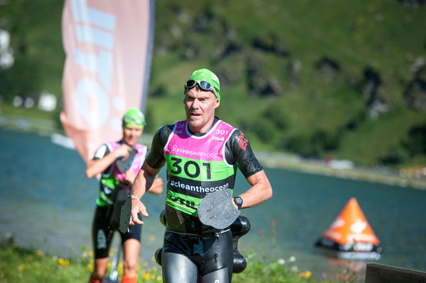 Swedes Joakim Brunzell and Johan Carlsson of Team Simployer early on in the race preparing for their first swim, after running 3km uphill.