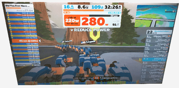 It doesn’t need to be Zwift, of course. The Sufferfest (Wahoofest, ridden by Suffooligans?!), Trainerroad, Golden Cheetah, Rouvy, any platform that allows you to build a structured workout, any of that works. For many, me included, multiplayer is a useful tool, because of the social aspect, the participant expectation, and what you might pick up in the comments during the session. For others, who don’t want the distraction, and who don’t need the glue of the group (I am motivated by group-glue) multiplayer is not where it’s at.