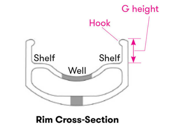 They continue, “A ‘hookless’ rim with a shorter G height is stronger and less expensive to make. Stiff mountain bike tires are inflated to ultra-low pressures. They won’t blow off their rims even if there isn’t much sidewall to hold them on. So the non-standard rims have worked fine for mountain bikes. These mountain bike rims usually come with low maximum pressure ratings.”