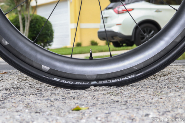 One of the benefits of tubeless tires is that there’s no inner tube to pinch flat at low pressure (however, it’s possible to pinch flat a tubeless or tubular tire with a hard rim strike). Interestingly, I see some people call for lower pressure on tubeless setups as a blanket recommendation, regardless of tire size, road surface conditions, or anything else.