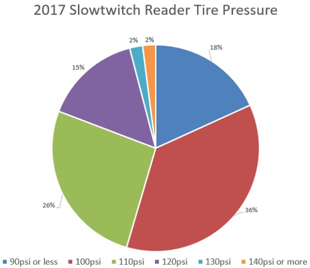 Along those lines, we just ran a poll in our Reader Forum – in fact, a repeat poll that we ran over two years ago to see what tire pressures are being used by real people over time. We wanted to see if things had changed, as much of the industry has moved to promoting lower pressures – often with wider tires.