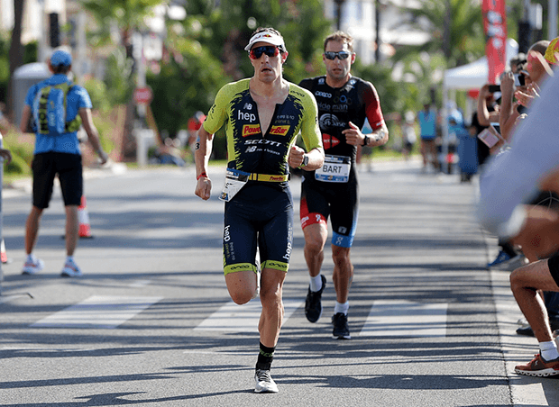 After a race-best 2:17:24 bike split, Von Berg arrived at T2 leading Brownlee and Iden by a few seconds with Kanute 3:20 back and Blummenfelt and Starykowicz just under 5 minutes back. Among those with a long shot chance were Sam Appleton (+5:44), Javier Gomez (+5:37), Bart Aernouts (+6:13), and Sebastian Kienle (+6:15) in 14th place.