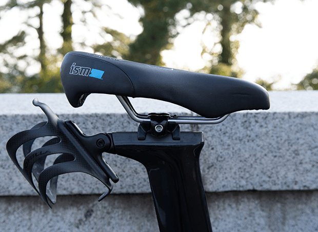 The cockpit is Cervelo’s own, and of all the bike companies that’ve tried to make their own aerobars, these are among the best. That said, the bars didn’t make it down to the newly introduced P-Series. While not shown, the front cage is populated by Profile Design’s Aero HC hydration system when she’s riding. Sika rides an ISM saddle, a PR 2.0, which is my favorite among the ISMs. The kit she's wearing is from Zoot.