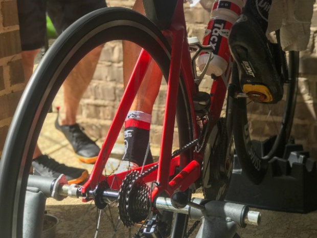 After snack time he launched into an easy 90 minute spin on a trainer set up on the backyard porch.