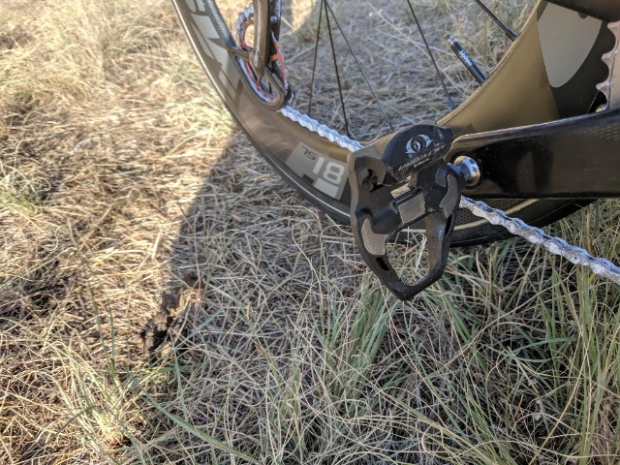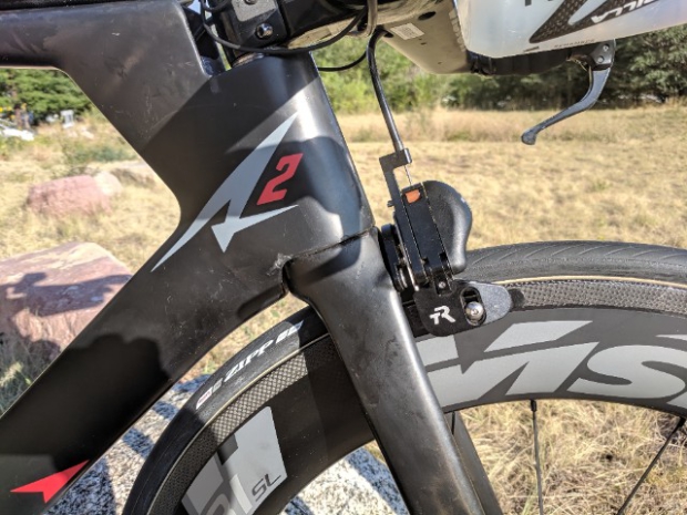 TriRig's Omega X front brake afixed to the front end of Peterson's bike.