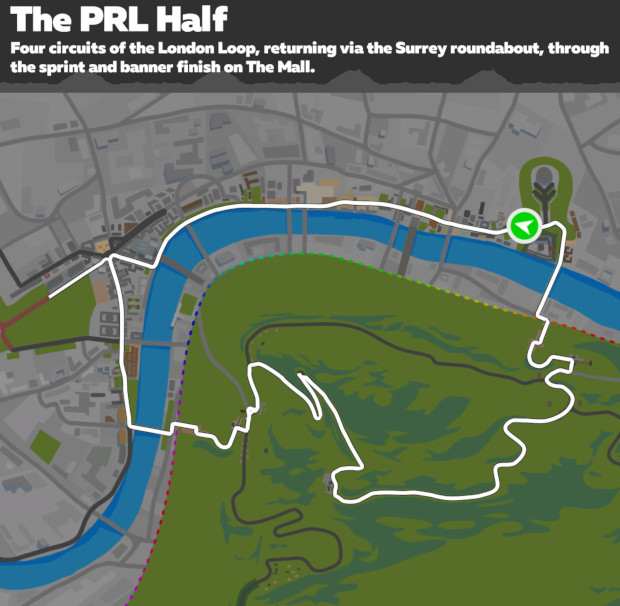 Like its big sibling, the PRL Half follows the London Loop, but instead of 11 circuits, you'll do 4. Piece of cake, right?