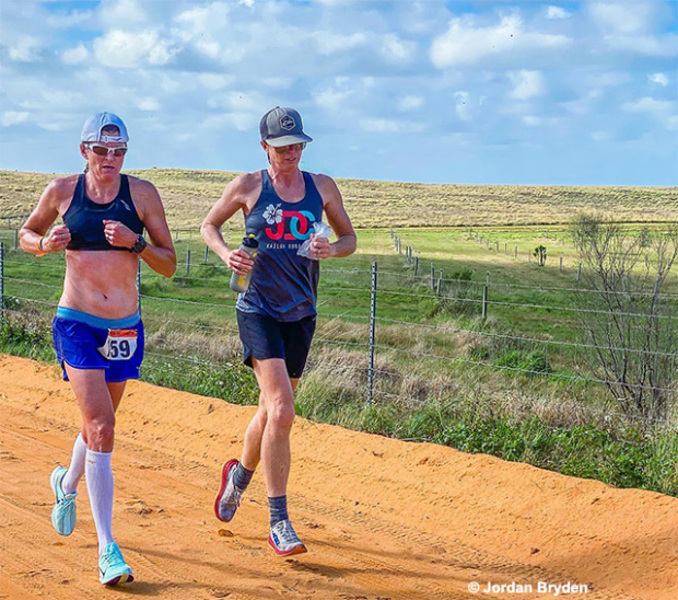I also modified my strength program with my new strength coach, Kevin Purvis. He took me through longer circuit training to replicate the demands of the race; some longer heavy sets, followed by endurance work challenging stabilizers to introduce them to what it might feel on Day 3 with 12 miles to go, running on loose sand and clay.