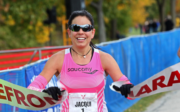 The ever-speedy Tim Hola taking stock of his run metrics.