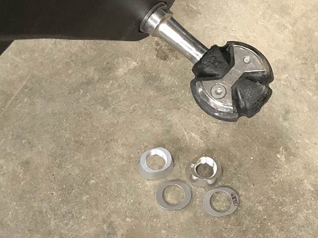 The crank is adjustable, but not in a wide enough range (170mm to 175mm), and it’s adjustable with a piece on the front and back of the pedal eye that are not hard-attached to the crank. If you lose one of these pieces I don’t see how the bike is rideable until you find a replacement. There are extra pieces for other crank lengths that you must keep track of, that is, there’s a hardware set for 172.5mm, and then another for 170mm and 175mm (you just reverse the pieces and they’re either one length or the other). There are many ways to make an adjustable crankset, I’ve used them all, and they’re all superior to this method. This is not a deal breaker, but it was an unforced error.