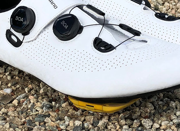 This has been a cycling shoe problem for a generation. Shift… these… holes… back! Back! Back! Not just Shimano. Virtually all cycling shoe makers. It’s not that I can’t get the cleats where I want them. I can, the great majority of the time. It’s that I’m always placed in the position of having to move the cleats all the way back. And then I just hope that the placement is correct. It’s like buying a bike with the front end slammed as low as it can go, and hoping that’s low enough. Why am I forced to one edge of adjustability? Reliably? Routinely? Industrywide? I do not want to engage my calf, other than as a stabilizing muscle. Please – industry – either change where the holes go in the shoe; or change the design of the cleat.
