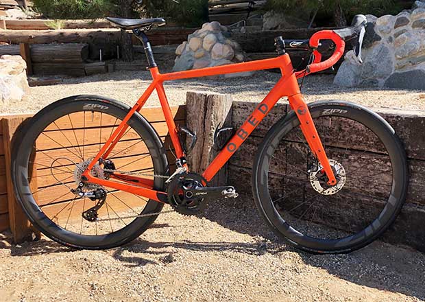 The OBED Boundary above is in my size (L), for somebody 6’2”, which I am, and is for extreme gravel. In fact, I’m going to be setting this up as my go-anywhere bikepacking rig. This bike above is outfitted with 650b (27.5”) HED Emporia (was Eroica) wheels, and Schwalbe 53mm G-One Bites, which is a tire that’s given me really good performance on everything from pavement to stuff for which a dual suspension MTB would be ideal.