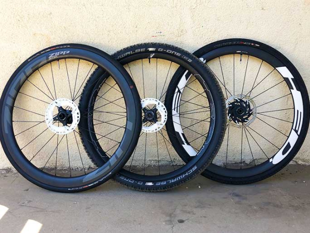 Let’s talk for a minute about how this works, in real life. I chose the wheels I did on purpose, for a specific reason. Wheel radius. Here are 3 wheels above, and 2 are similar and 1 is the outlier. The similar wheels are the HED Emporia and the Zipp 303 S, and how they’re similar is in wheel radius. This means that if the bike designer had in mind the radii of these 2 wheels when coming up with this bike, then bottom bracket height, steering geometry, shoe overlap, is preserved regardless of which wheel you choose. Certainly the Zipp + 30mm road Schwalbes are going to ride faster on pavement. But the bike will feel similar regardless of wheel.