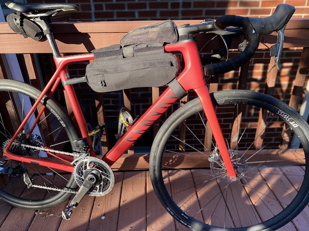 The Endurace is my endurance road machine that is fast and capable with compact gearing, disk brakes, and clearance for 32c tires.  It’s just as happy on fast group rides as country roads with a quick change in tire pressure.  Setting your tires up tubeless is key for road bikes as you can run 20 PSI less getting a load more traction and flat resistance. I run Maxxis Refuse 32s with 65 PSI. The Ergon SR Men saddle rounds out my all-day set up for this bike.