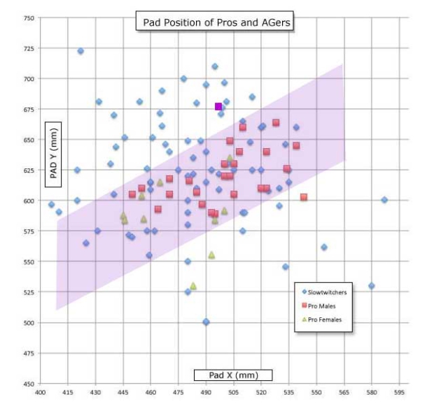 It’s not just a consensus. It’s a consensus of professionals. If we are going to talk about bike fit, for example, no, I’m not going to take a random sample of how all triathletes fit aboard their bikes, identify a series of means, and call this the consensus position. I often use the term “orthodoxy” and in the graph below the bike positions of a random sampling of Slowtwitchers are in blue, but pro male triathletes are in red.