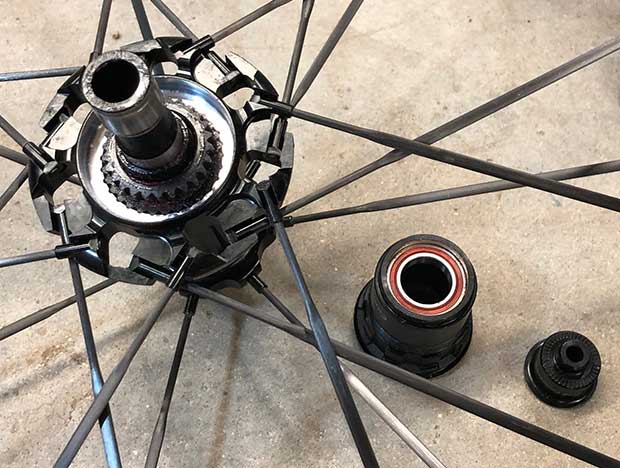 A lot has been learned in the 30 years since that happened but even allowing for modern advancements the CADEX hubs and spokes are impressively done. I have all the end caps for quick-release and thru axle, and a couple of different driver bodies. I pulled everything apart and put it back together again, with some trepidation over whether I had fatally screwed the rear hub, but to my mild surprise it all went back together like a bunch of Legos, and the hub worked like a champ.