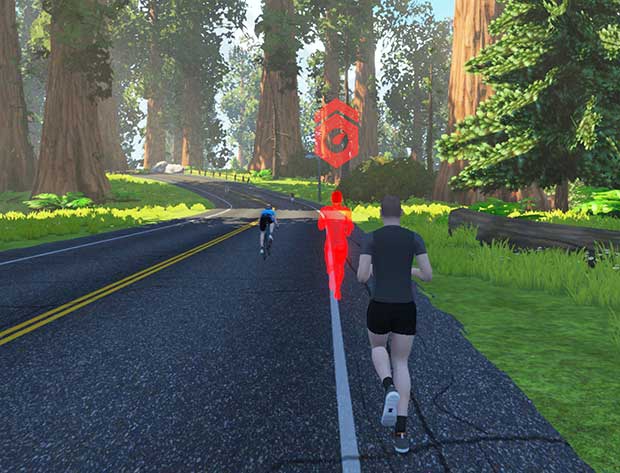 But it’s the coolest place to run in Zwift, and because of the restrictions placed on cyclists runners have this stretch of singletrack almost to themselves.
