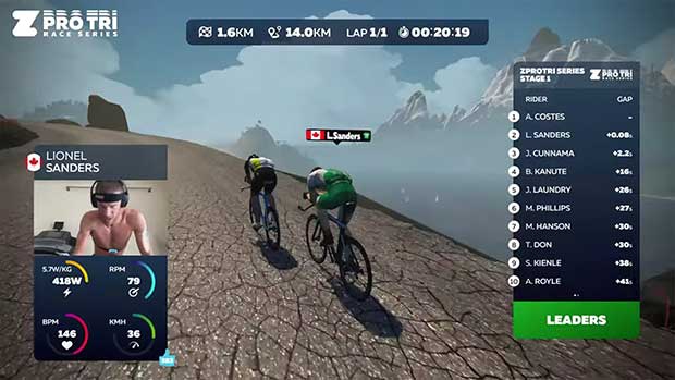 The races are short and sweet, in accordance with racing Zwift culture. But not that short. The format is bike-run, with the cycling leg consisting of a no draft 35-minute race, but it’s mass start. One advantage to Zwift is that the platform can simply turn off drafting. Of course, most of us who take part in Zwift events are on virtual road bikes, and you’ll want to go into the Zwift “garage” and choose your fastest available TT equipment, including a tri bike. If you don't choose your own equipment you'll be placed on the default Zwift TT bike when you enter the pen.