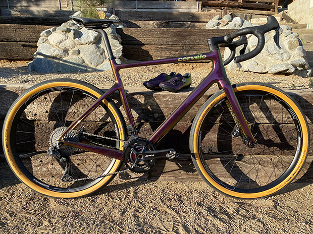If you look at these images, you can see there’s a pair of shoes in a lot of them, and to be honest with you my very first impression when I took the Áspero-5 out of the box, was, Cervelo made a bike for the Shimano shoes! I’m not overly style-driven but I went bonkers for the Shimano RX8 gravel shoe in purple/green when I first saw it. That shoe and this bike were made for each other.