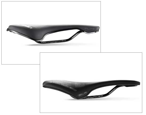 I acquired 4 new Selle Italias, since these are the saddles I have been riding: two of the new SLR variety, and 2 of the Flite variety. Each saddles is made in a standard and wide flange width. And no, I have no arrangement with Selle Italia. I forked over Slowman dough and bought them. (Below is the the Flite Boost Gravel Superflow.)