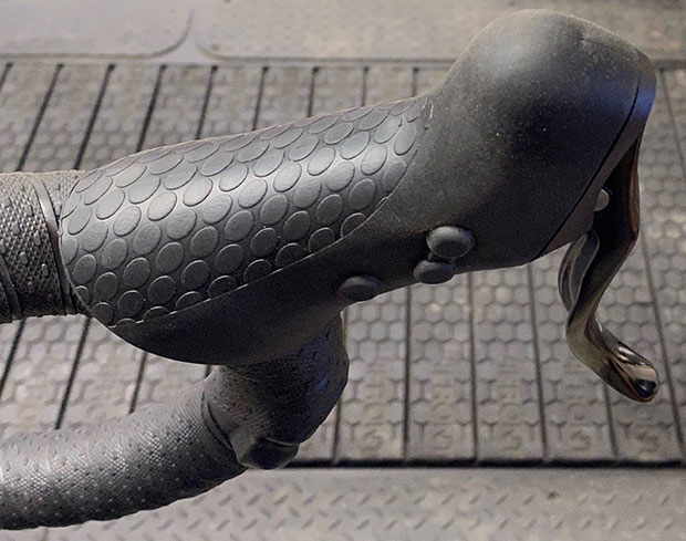 I consider the shifter ergonomics quite good. Comfortable and lifelike. Tacx, by comparison, have comfortable shifters on the NEO Bike, but they are not like any actual shifters on a bike. The shift buttons on the StagesBike, well, this takes some getting used to. Wahoo has the best process for shifting gears on the KICKR Bike, bar none. What I do like about the buttons on the StagesBike is that they’re programmable, but these buttons (shown below) are just not as ergonomic as what you get on the Wahoo KICKR Bike.